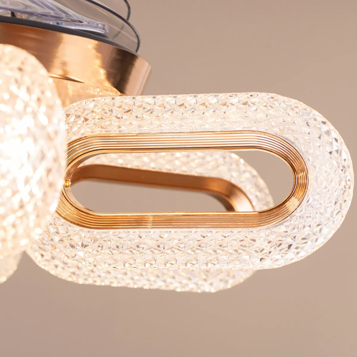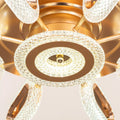 42-Inch Golden Crystal Wormhole Ceiling Fan Chandelier with Remote – Retractable Blades & Trio Light LED | Luxiono Lighting