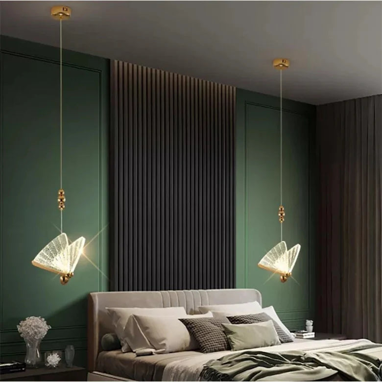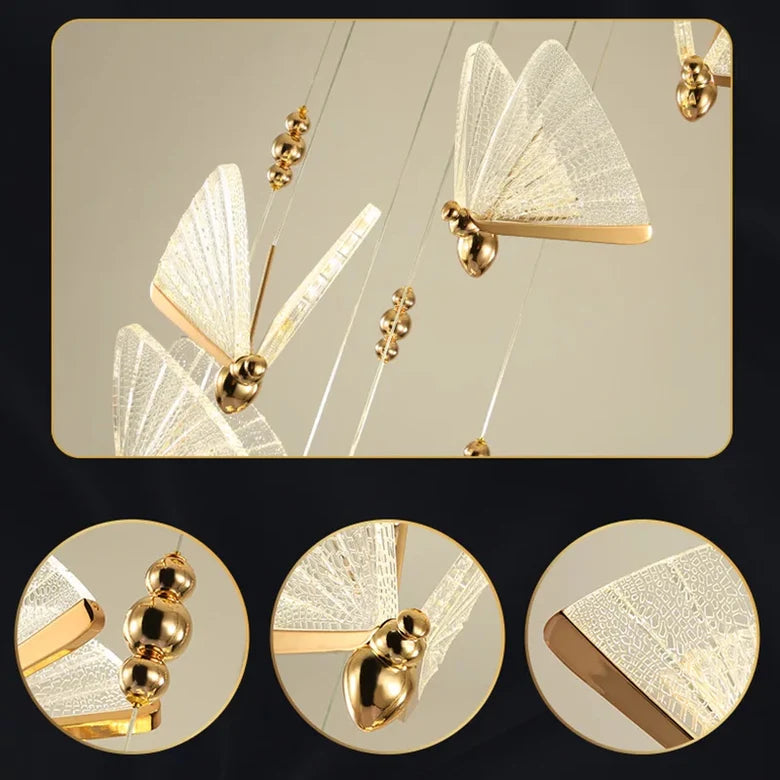 Luxiono Lighting Creative Butterfly Chandelier Lamp Ceiling Light for Cafe Living Room Loft Golden L Natural