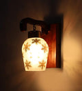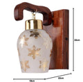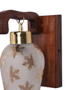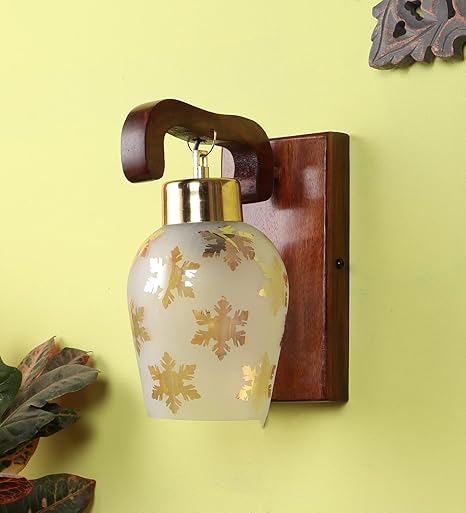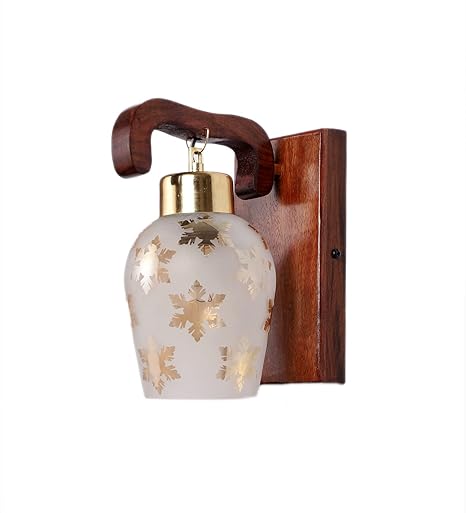 Luxiono Lighting Sheesham Wood Wall Light/E 27 Bulb Base/U-Downlight Design/Gold Plated Metal Cap/Gold Leaf Printed Glass/Antique/Home/Office Decor