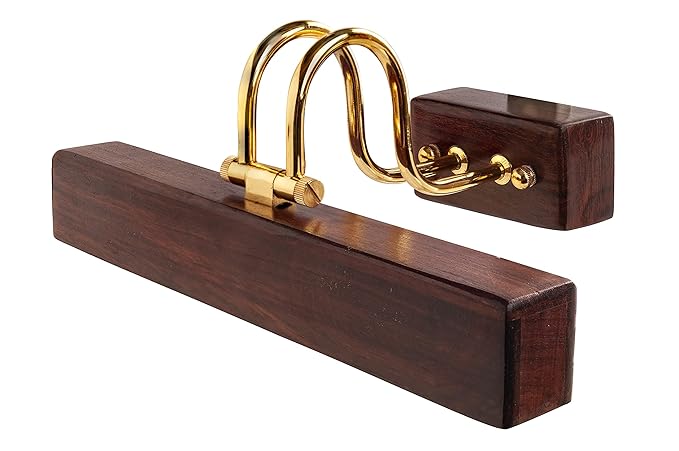 Luxiono Lighting Sheesham Wood Wall Light/Picture Light/Vanity Light for Mirror, Dressing Table with Adjustable Head, 1 Feet Wide with 9W in-built Warm White LED/Brass Rivets