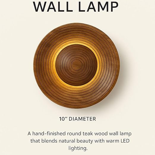 Luxiono Lighting Wooden Highlighter Wall Lamp, Modern Circular Wall Light, Wooden Ring Design – Warm White LED Light for Home Decor, Living Room, Bedroom, Hallway (16 Inch)