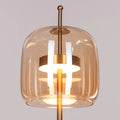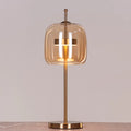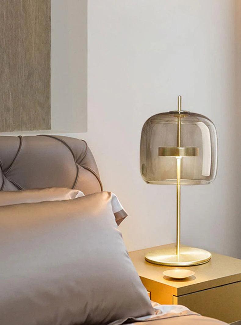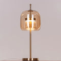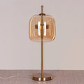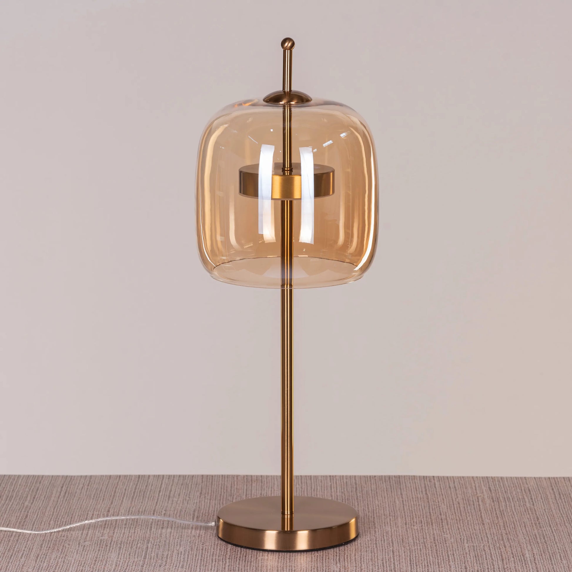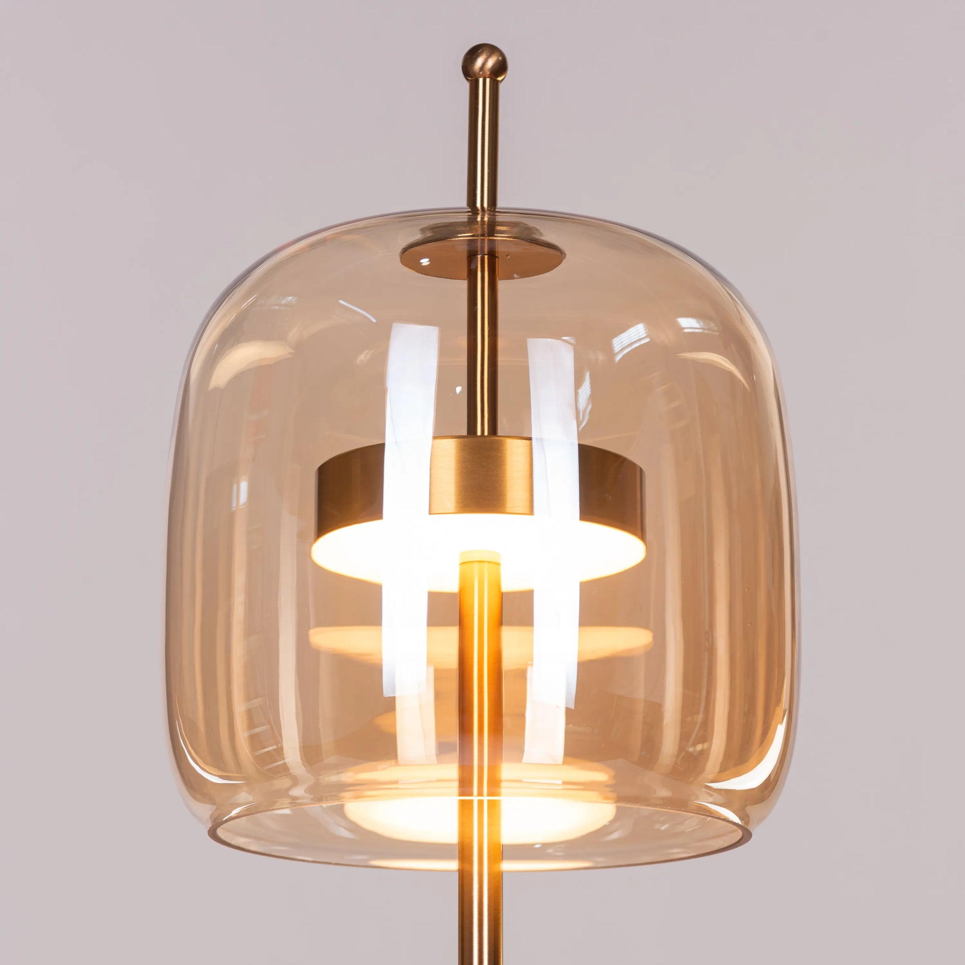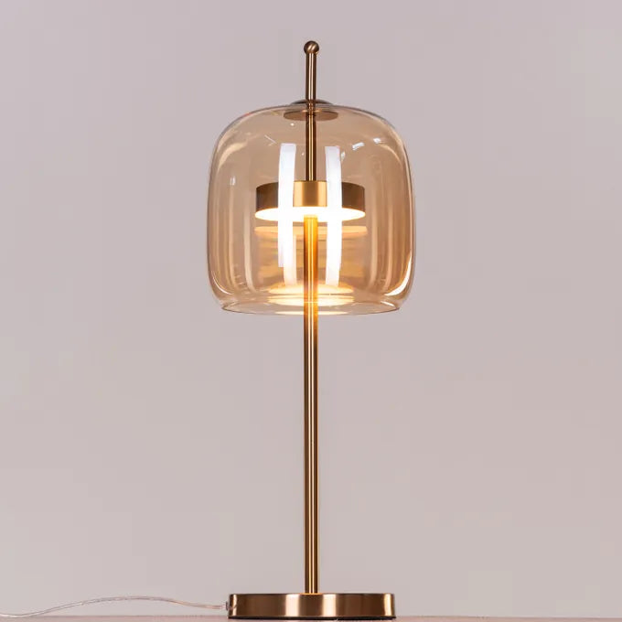 Sweet Escape Glass Table Lamp – Built-In LED Warm White Light with Amber & Grey Cognac Glass Shade & Gold Base for Home & Office | Luxiono Lighting